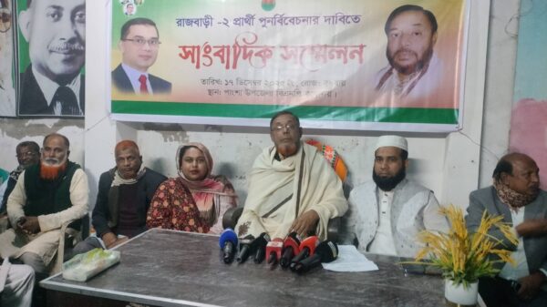রাজবাড়ী-২ আসনে বিএনপির প্রার্থী পুনর্বিবেচনার দাবিতে সংবাদ সম্মেলন করেছেন বিএনপির জাতীয় নির্বাহী কমিটির সদস্য, সাবেক সংসদ সদস্য এবং রাজবাড়ী জেলা বিএনপির সাবেক সভাপতি নাসিরুল হক সাবু।